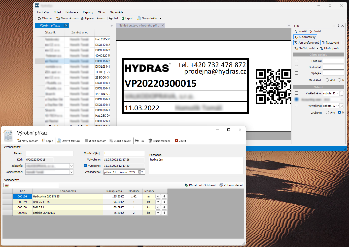 ... Plánování objednávek a expedice materiálu.