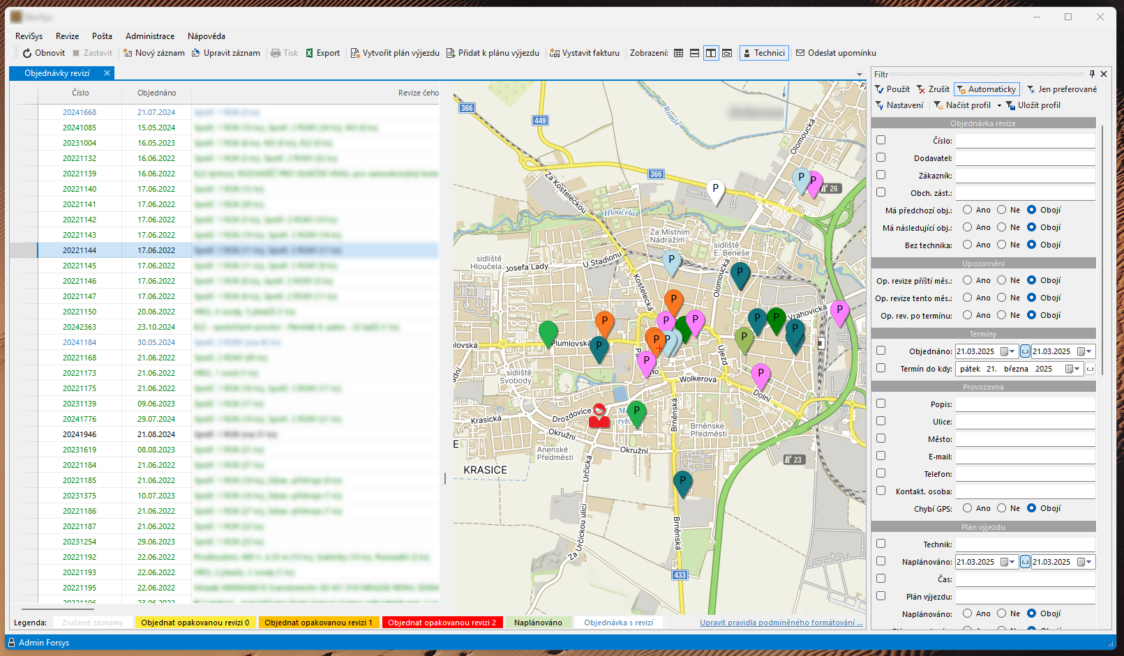 ... Zobrazení elektro revizí na mapovém podkladu umožňuje efektivně plánovat výjezdy revizních techniků.