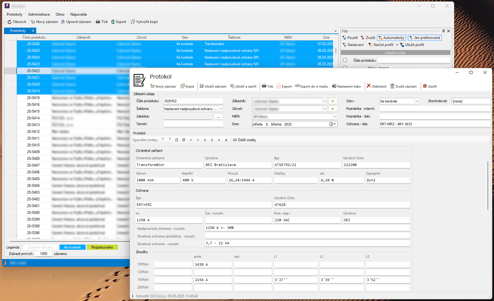Správa protokolů elektrorevizí, hlídání opakovaných revizí, plánování a optimalizace výjezdů revizních techniků, provázání s účetnictvím, generování tiskových výstupů.