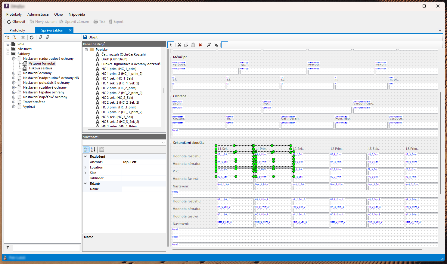 ... Designer zadávacího formuláře elektro protokolu.